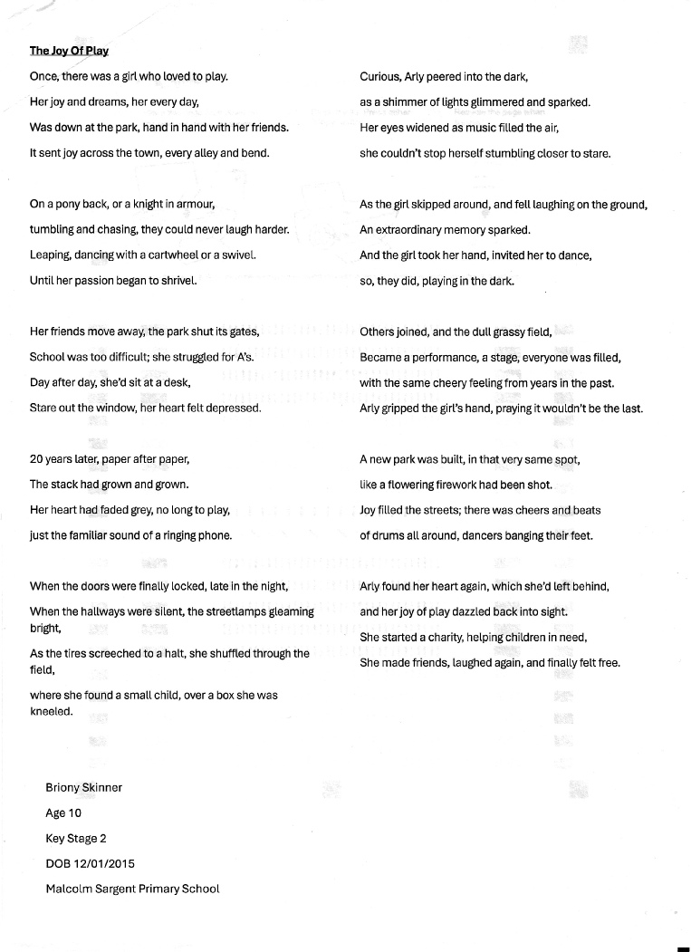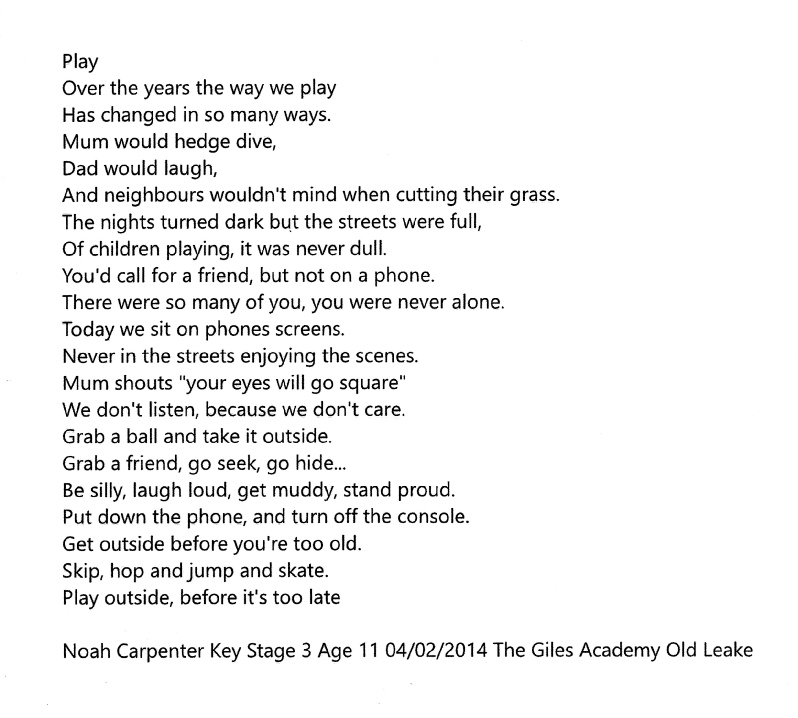 The theme for the competition this year is for poems on the subject of ‘PLAY’