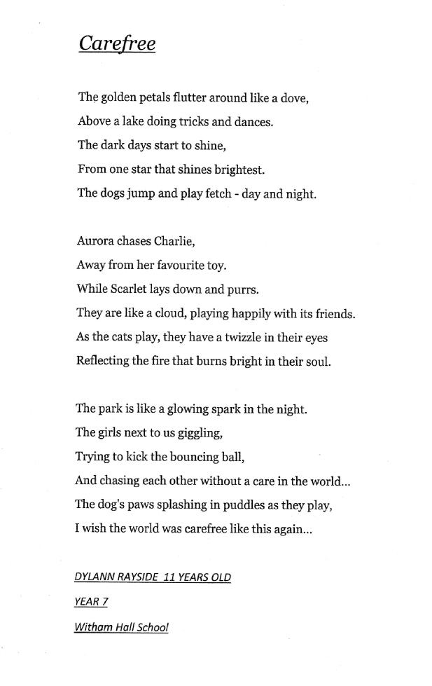 “Having come to a decision on the winners of the poetry competition, I felt humbled by the authenticity of these entries. They all had such emotive spirit and wonderful use of language. I was grateful for the opportunity to judge the competition.”